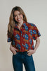 - collared v-neck with button placket